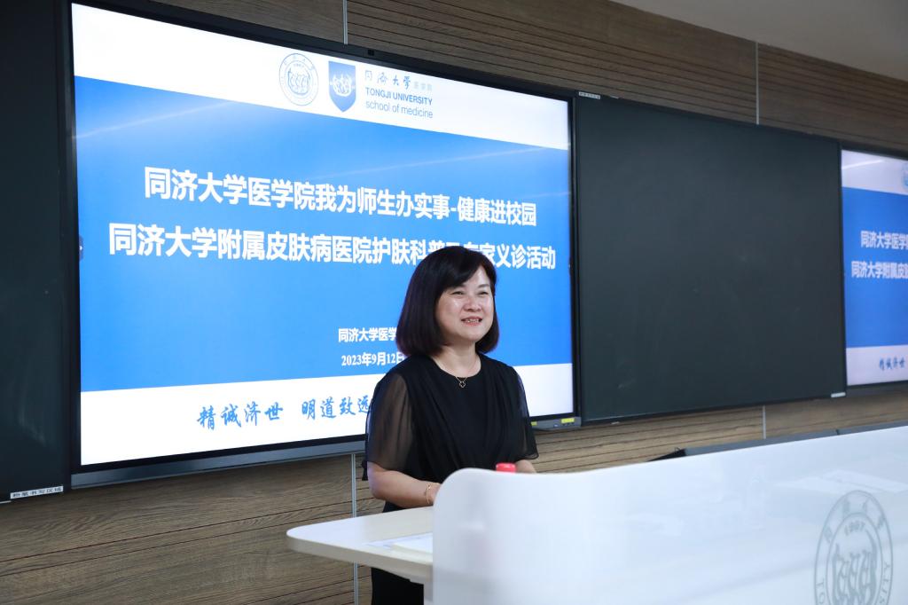 为庆祝教师节,9月12日下午,pg游戏电子模拟器在沪西校区举办“我为师生办实事”健康进校园系列活动——pg游戏电子模拟器附属皮肤病医院护肤科普及专家义诊活动。pg游戏电子模拟器发展规划与学科建设部部长蔡三发、沪西校区管理委员会办公室主任徐纪平、pg游戏电子模拟器院长郑加麟、pg游戏电子模拟器党委副书记兼纪委书记曾盈、pg游戏电子模拟器院办副主任蔡文萍出席活动。pg游戏电子模拟器附属皮肤病医院副院长史玉玲、门诊办公室主任强燕、皮肤内科副主任陆家睛、中医皮肤科副主任姜文成、医学美容科石钰副主任医师等专家来校义诊。50余名教师参加活动,曾盈主持会议。