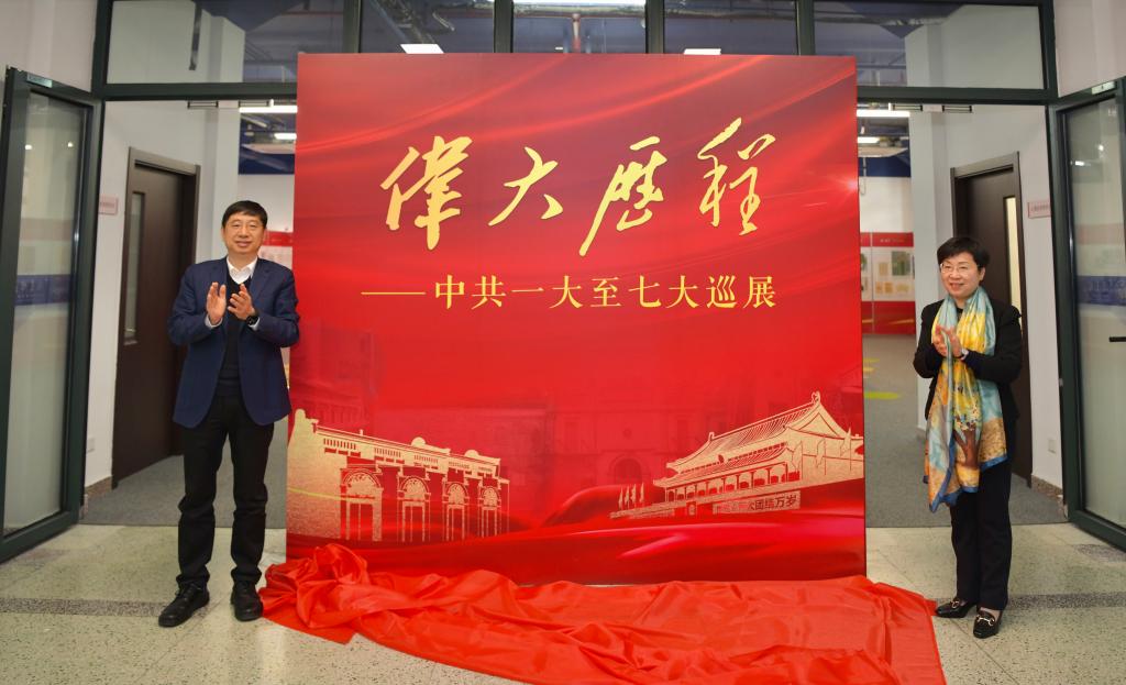 11月15日上午,“伟大历程——中共一大至七大巡展”在沪西校区图书馆揭幕。上海市委党史研究室主任严爱云、校党委副书记吴广明出席,共同为展览揭幕。
