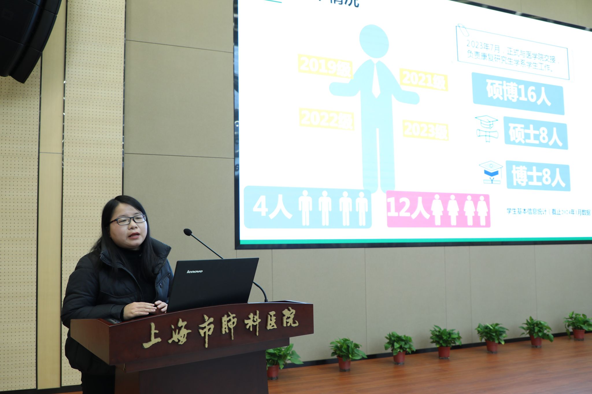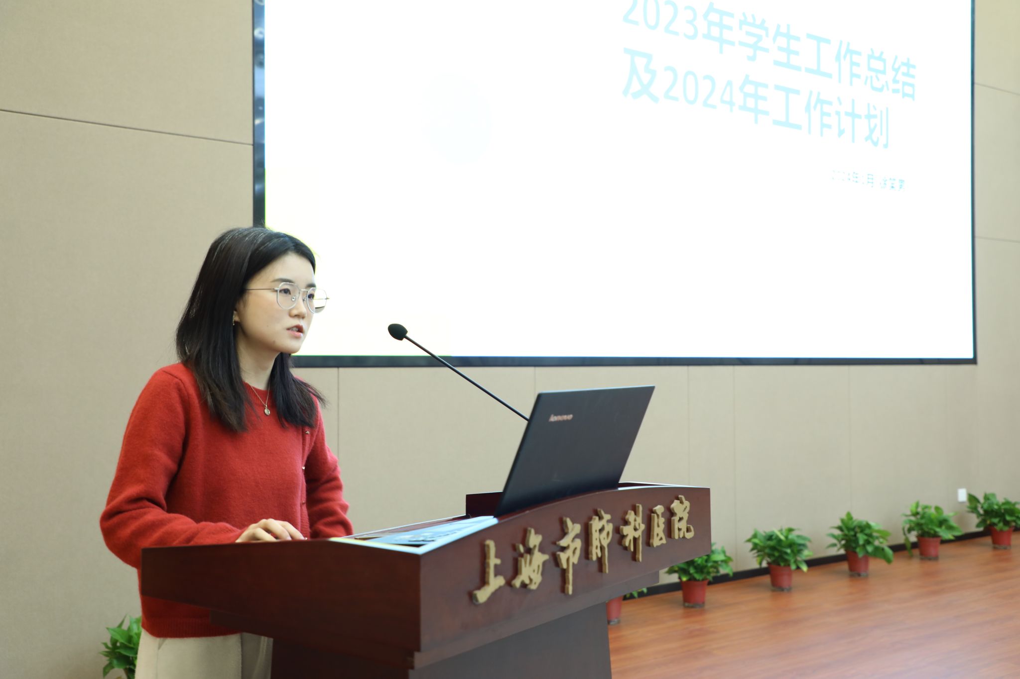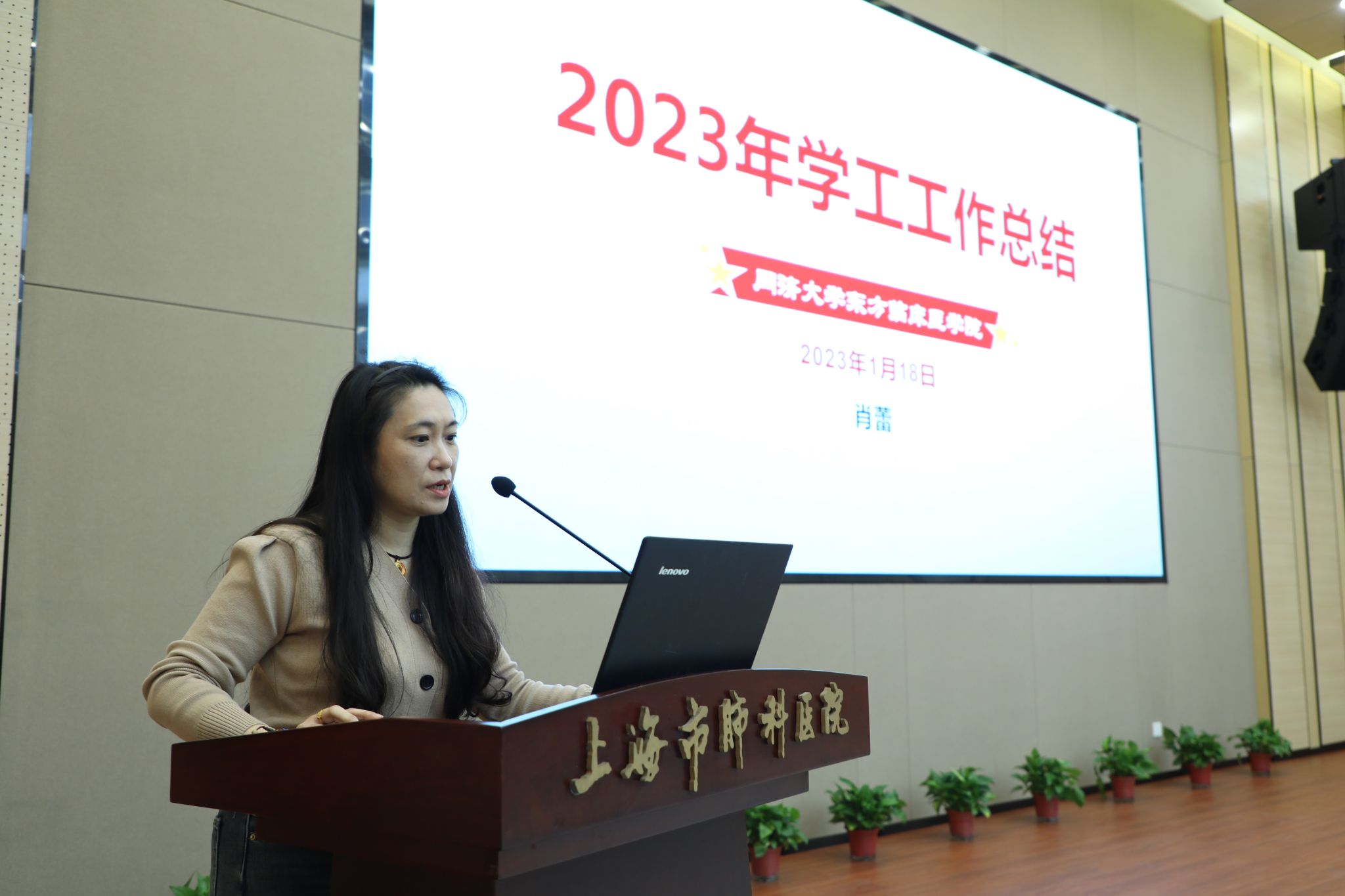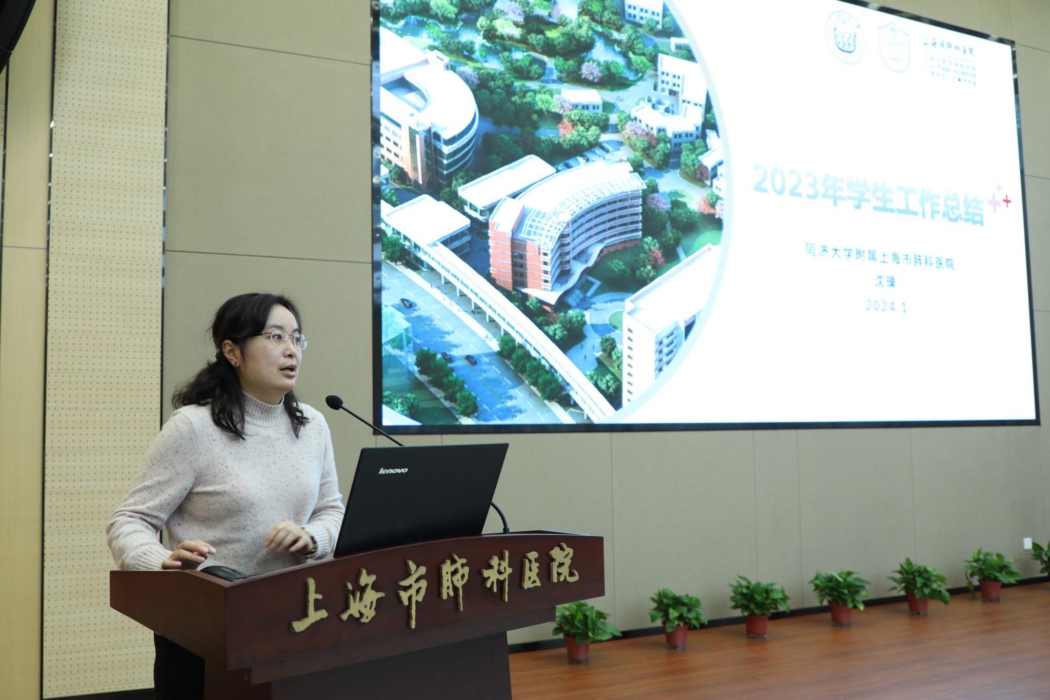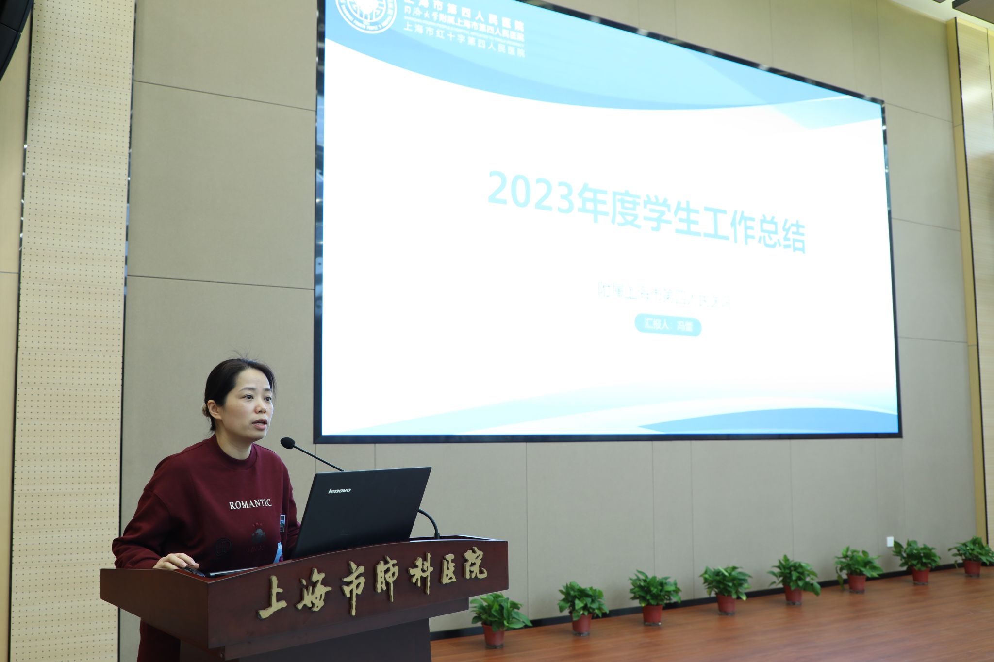 系部述职环节分别由附属第十人民医院本科生负责人杨佳敏、附属第十人民医院研究生负责人王园园、附属同济医院学生工作负责人黄蕾、附属同济医院学生工作负责人徐笑男、附属东方医院本科生负责人肖蕾、附属东方医院研究生负责人蒋杰、附属上海市肺科医院学生工作负责人沈瓅、附属妇产科医院学生工作负责人成星、附属杨浦医院本科生负责人张文杰、附属杨浦医院研究生负责人张小丽、附属养志康复医院本科生负责人邵俊杰、附属养志康复医院研究生负责人范辰辉、附属皮肤病医院学生负责人谭飞和附属上海市第四人民医院学生负责人冯蕾等14位老师围绕思政引领、日常管理、班团建设、特色工作等方面展开汇报。大家反思了困难点、总结了新做法、凝练了好经验、展示了新亮点,并对2024年工作进行了展望。