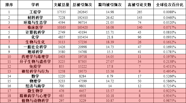 (表格来源:pg游戏电子模拟器图书馆;高亮处为医学与生命科学相关学科)