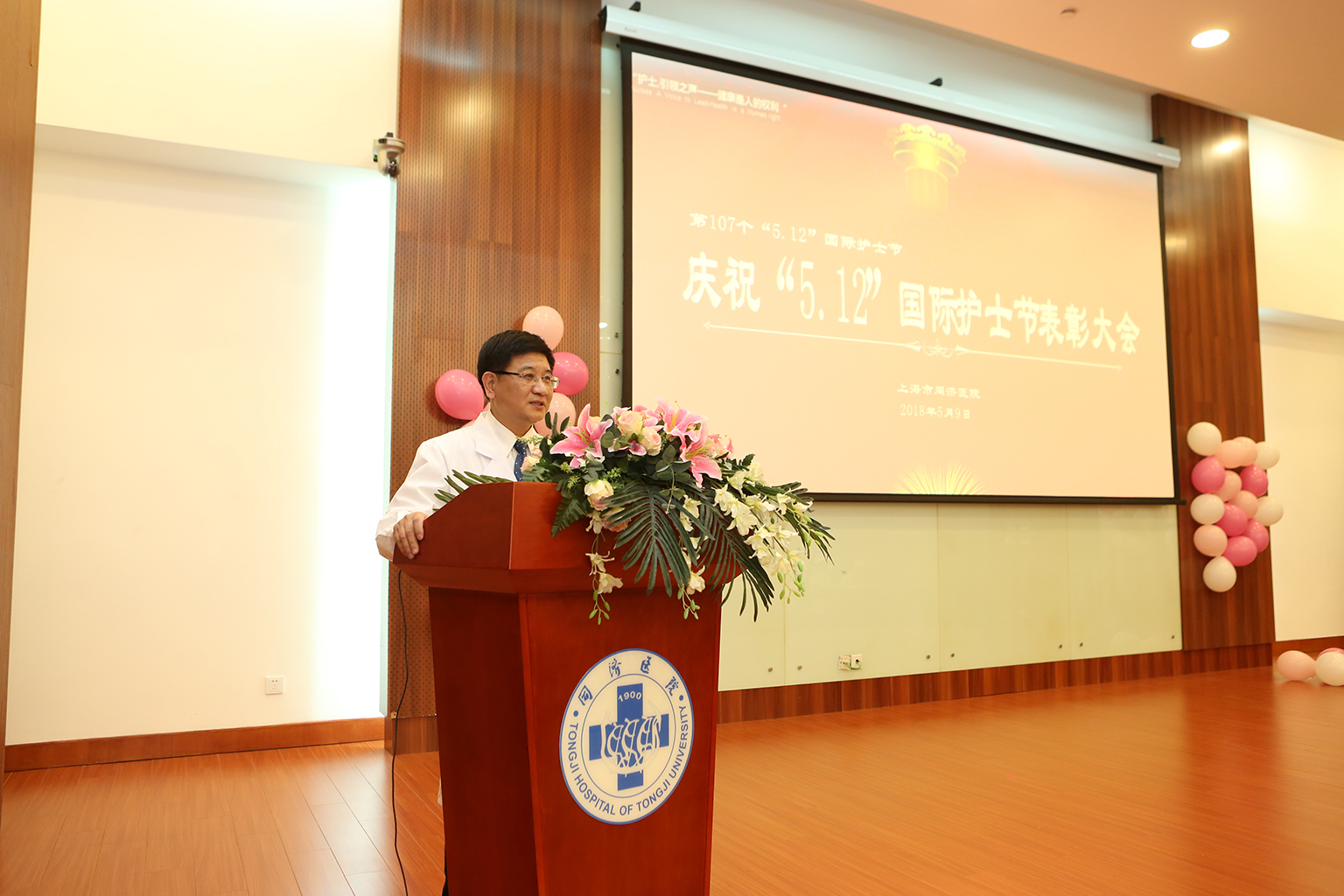 梁爱斌副院长宣读表彰名单,与会领导分别为上海市“左英护理奖”提名奖、上海市卫生计生行业“五四两优”奖、上海市普陀区卫生计生系统护理健康教育创新创优项目、上海市优秀青年护理人才、同济医院优质护理服务先进病区、品管圈优秀圈组等获得者颁奖。