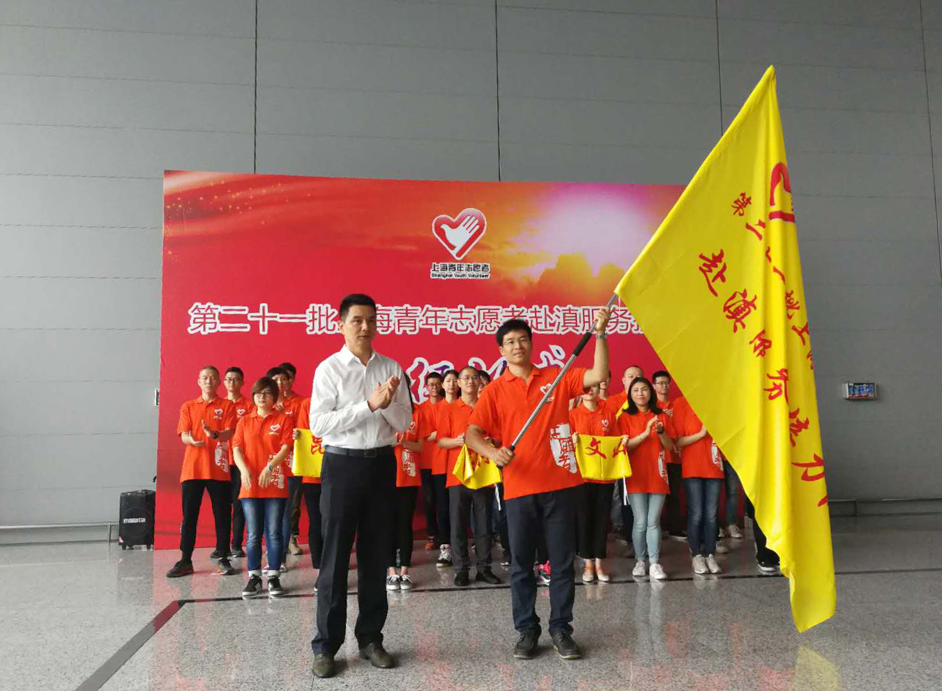 5月30日的清晨,pg游戏电子模拟器附属同济医院内分泌代谢科谢壮丽同志作为第二十一批上海青年志愿者赴滇服务接力队总队长启程出征。上海市文明办副主任姜鸣、团市委副书记邬斌来到虹桥机场为青年志愿者送行。谢壮丽作为总队长代表接力队发言,并接受姜鸣的授旗。pg游戏电子模拟器团委副书记葛畅、pg游戏电子模拟器附属同济医院党委副书记花艳、团委书记徐镶怀、内二党支部书记赵家胜等出席出征仪式。