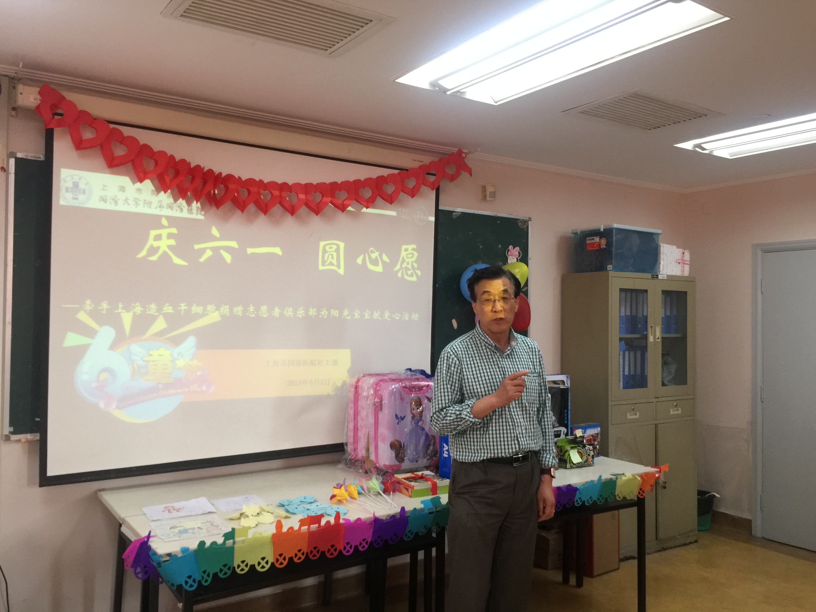 6月3日下午,上海市慈善基金会秘书长、“慈善之星”秦志刚,上海市红十字造血干细胞捐赠志愿者俱乐部秘书长崔兼明、上海市红十字造血干细胞捐赠志愿者俱乐部副秘书长袁星、志愿服务部部长刘伟、综合事务部副部长黄琳、供者组副组长陶丽雅等一行带着孩子们的心愿来到pg游戏电子模拟器附属同济医院儿科与“阳光宝宝”们一起欢度六一。