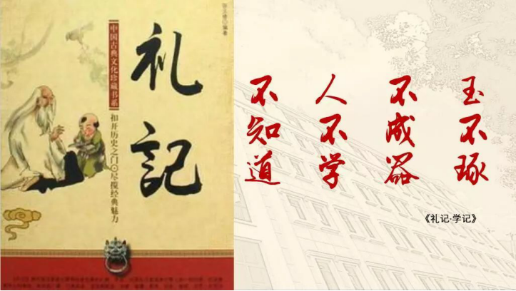 “玉不琢,不成器,人不学,不知道” 这句古语出自《礼记·学记》,寓意玉石不经过琢磨就不能用来做器物,人不通过学习就不懂得道理。“知・道”是对世间万物有所了解、认识,经历寻知、叩问、思索的过程,从而明理、知性、求道