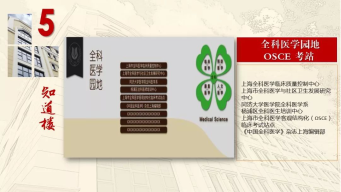 5楼是全科医学园地,设有:上海全科医学临床质量控制中心、上海市全科医学与社区卫生发展研究中心、pg游戏电子模拟器全科医学系、杨浦区全科医生培训中心,承担了上海市全科医学客观结构化(OSCE)临床考试站点和《中国全科医学》杂志上海编辑部功能。
