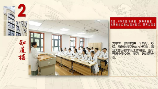 2楼是教研室和PBL(字幕Problem-Based Learning,简称PBL,也称作问题式学习)教室,为学生、教师提供一个舒适、整洁的学习和办公环境,可以开展小型交流、学习培训等。