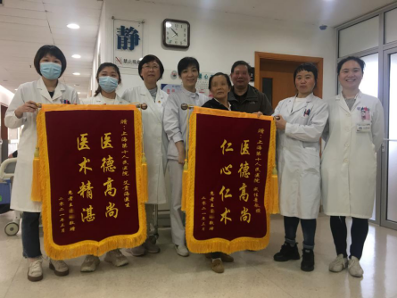 患者出院后给治疗团队送锦旗以表感谢