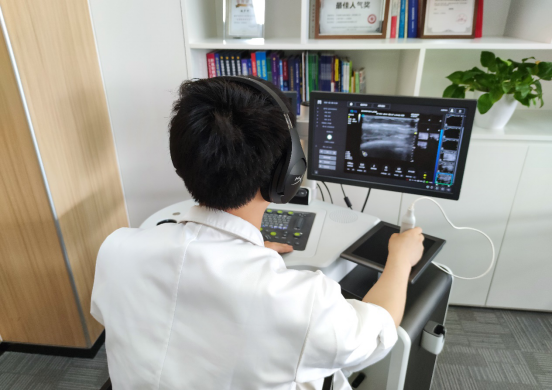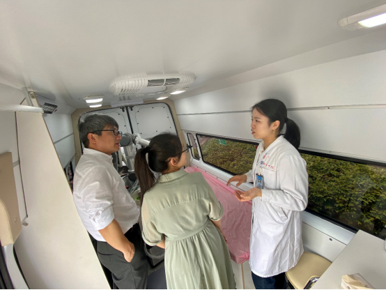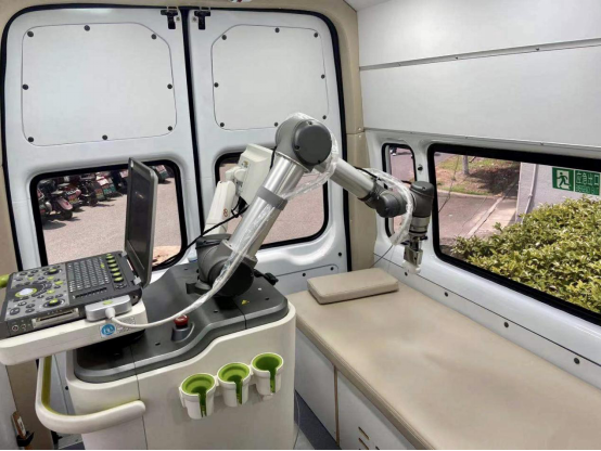 此次应用的5G远程超声机器人移动平台,利用5G网络技术贯通医生端和患者端,专家只需在医生端的多维压力传感装置上进行模拟操作,便可远程控制患者端超声探头机械臂精准复制其手法进行扫查,并通过5G移动超声机器反馈回的实时动态影像,为远在外地的患者进行检查,有效解决了专家们有志于开展义诊筛查,但常却分身乏术的困扰,也充分适应疫情防控常态化的要求。此外,这辆5G远程超声机器人移动车装有单向透视玻璃,也为患者的隐私提供了充足保障。