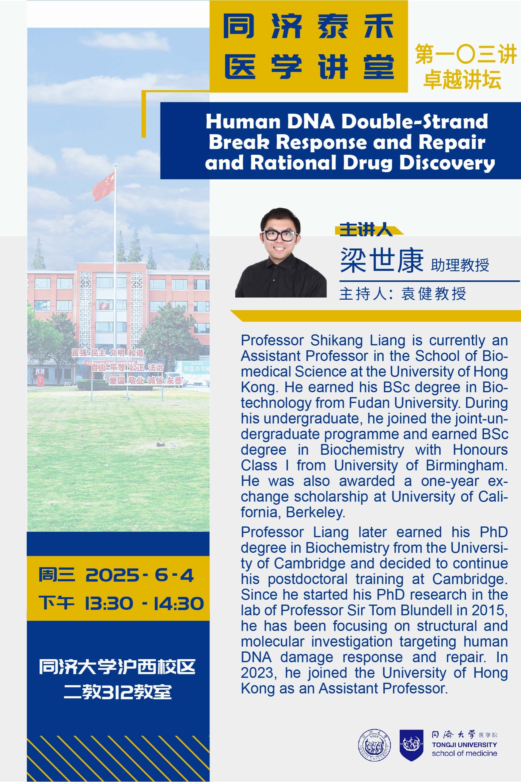 泰禾医学讲堂第103讲:Human DNA Double-Strand Break Response and Repair and Rational Drug Discovery