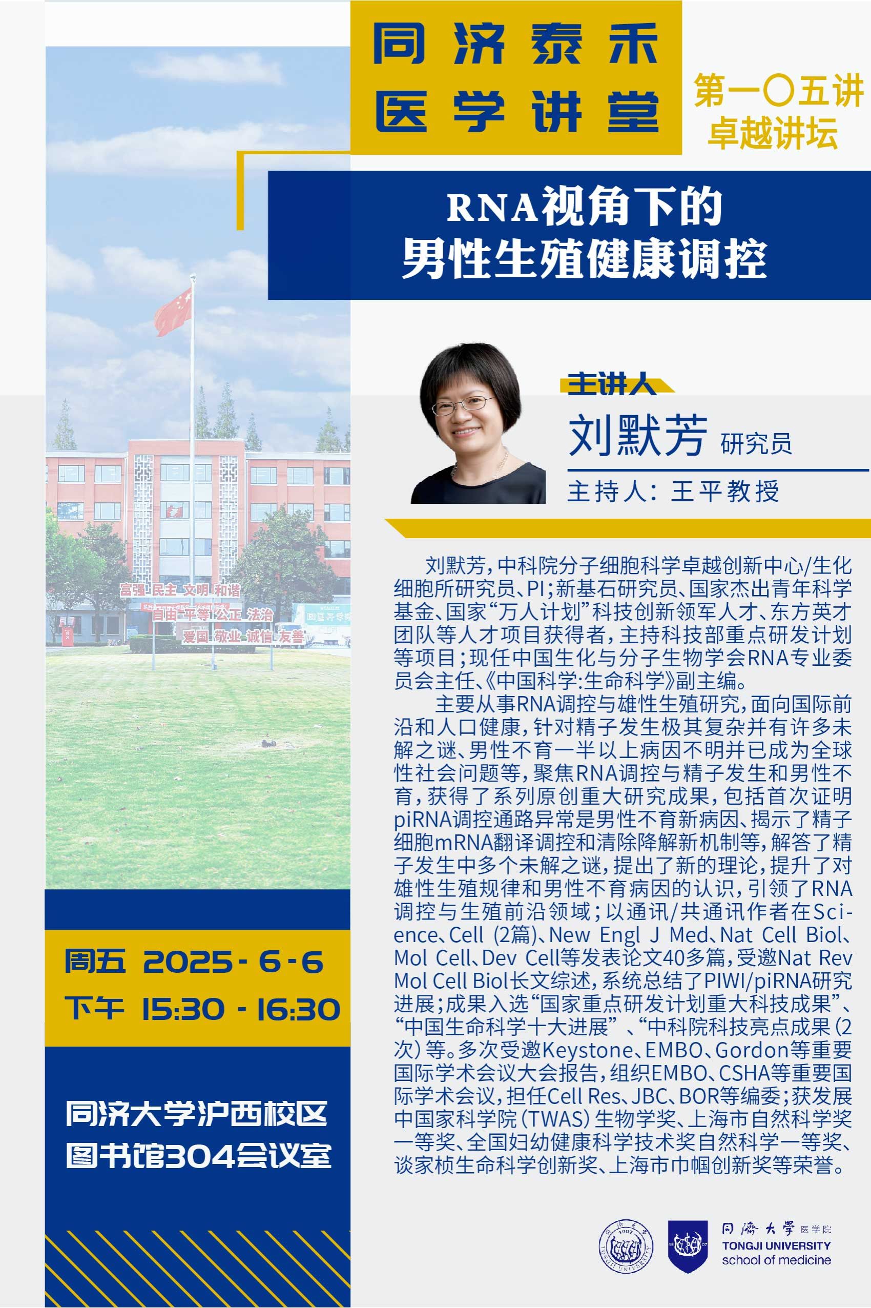 报告题目:RNA视角下的男性生殖健康调控