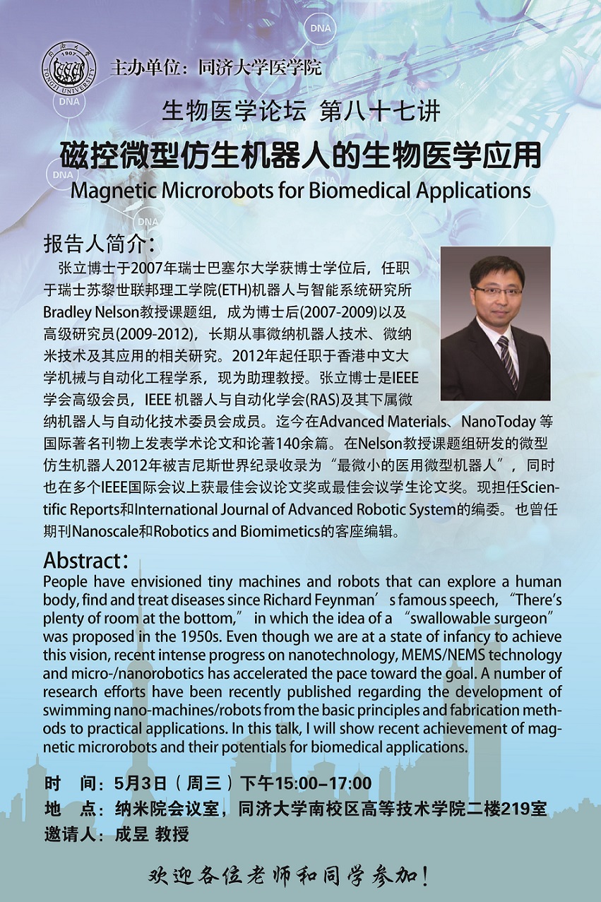 生物医学论坛第87讲:磁控微型仿生机器人的生物医学应用