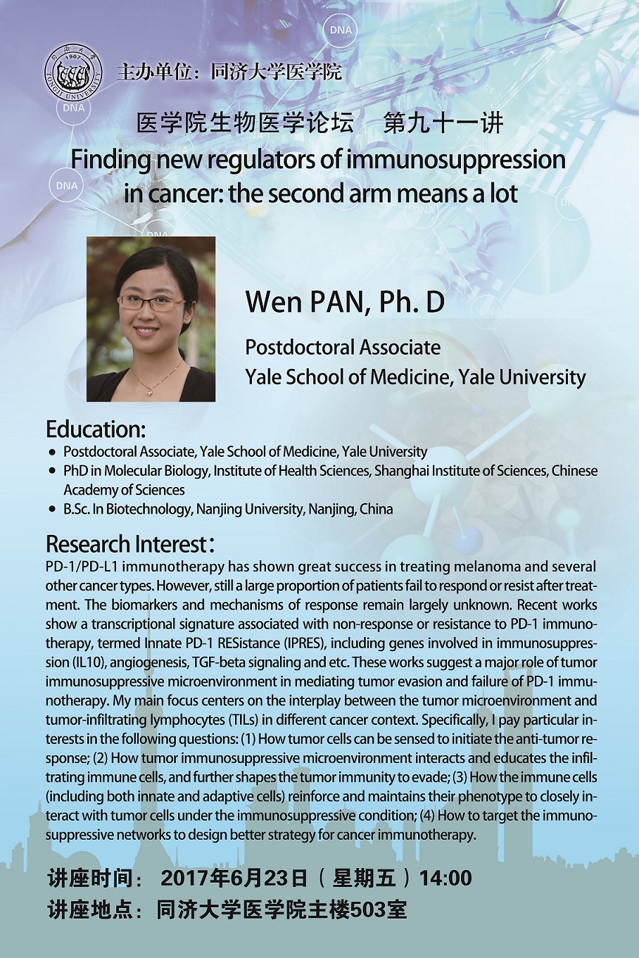 生物医学论坛第91讲:Finding new regulators of immunosuppression in cancer: the second arm means a lot