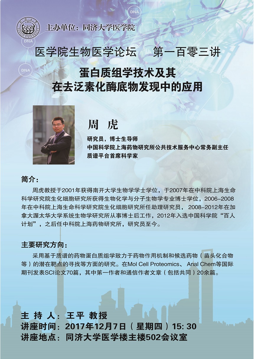 生物医学论坛第103讲:蛋白质组学技术及其在去泛素化酶底物发现中的应用