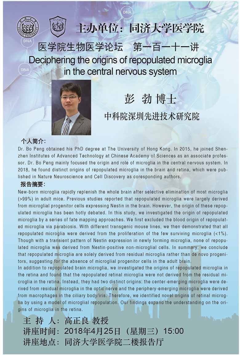 生物医学论坛第111讲:Deciphering the origins of repopulated microglia in the central nervous system