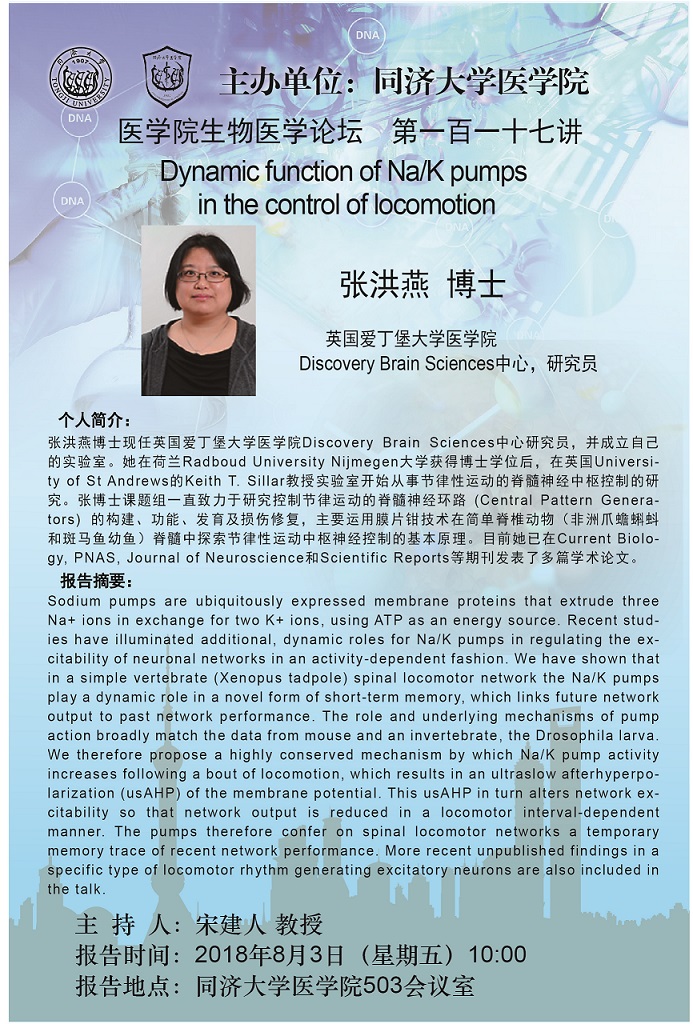 生物医学论坛第117讲:Dynamic function of Na/K pumps in the control of locomotion