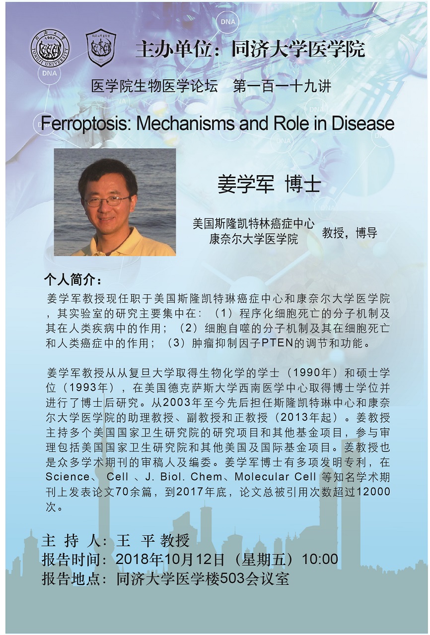 生物医学论坛第119讲:Ferroptosis: Mechanisms and Role in Disease