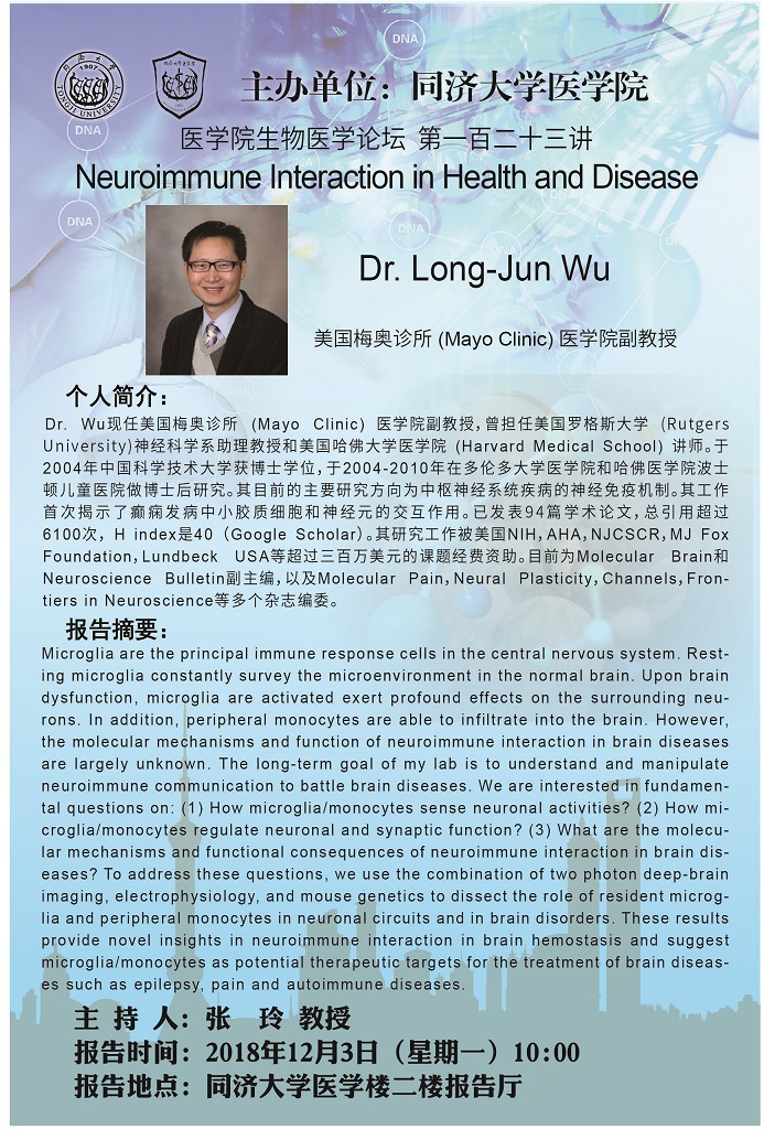 【院级高等讲堂】生物医学论坛第123讲:Neuroimmune Interaction in Health and Disease