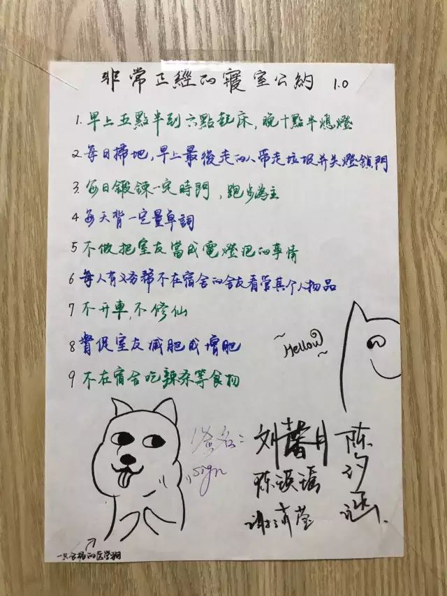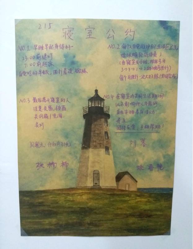 组织学生自主学习“五守”pg游戏电子模拟器学生行为规范,做“守时”“守序”“守信”“守纪”“守法”的“五守”大学生。为营造良好的寝室环境,培养学生的规矩意识,pg游戏电子模拟器2017级全体本科新生在每一间寝室制定张贴了个性化的寝室公约,遵守校规校纪从寝室小事做起。