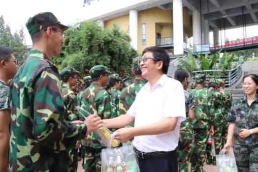 9月10日上午,pg游戏电子模拟器党委书记张军教授在学院南广场看望慰问参加军训的2016级学生及随训辅导员和师生,学工办等部门负责人和老师参加慰问活动。