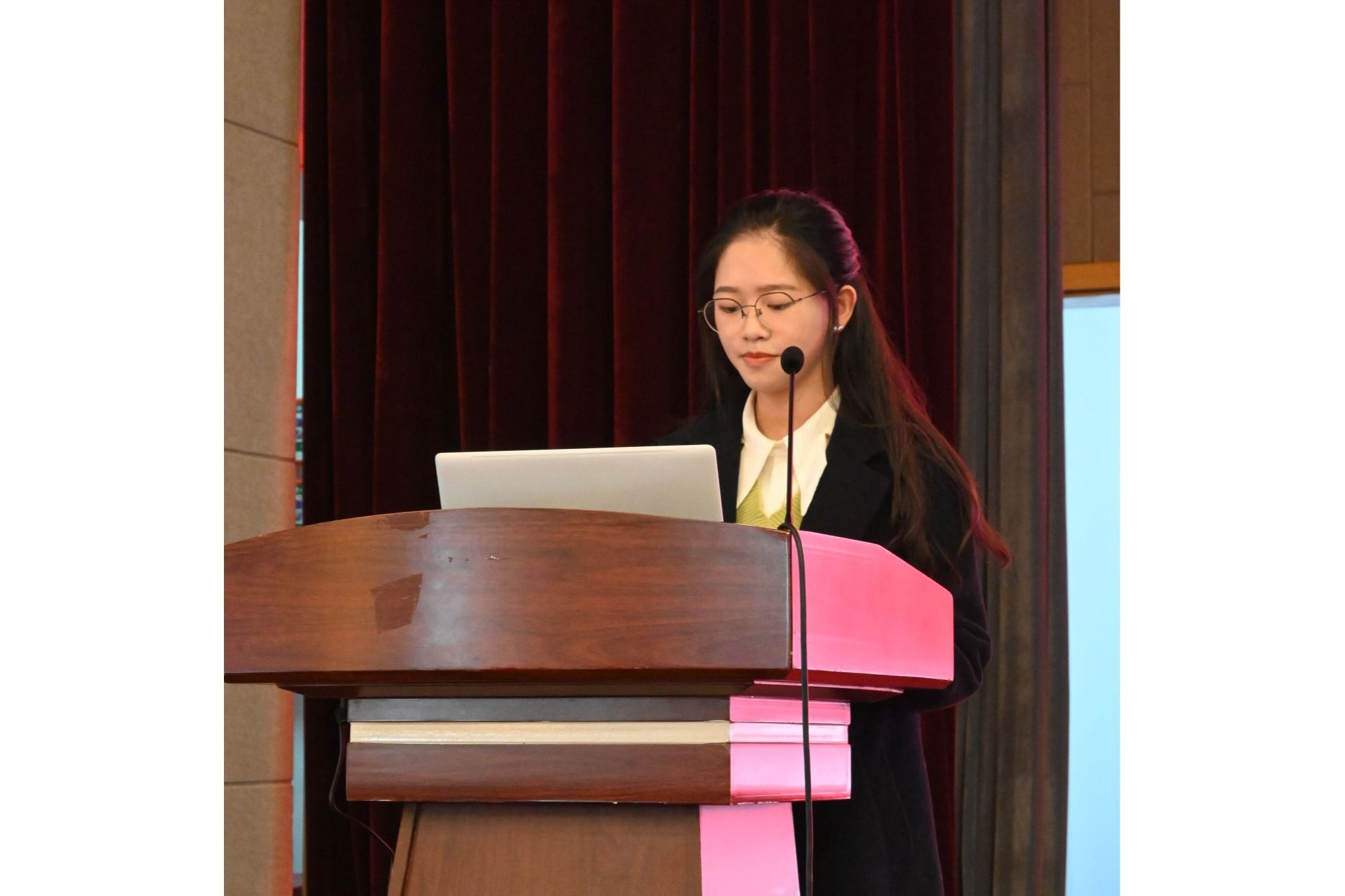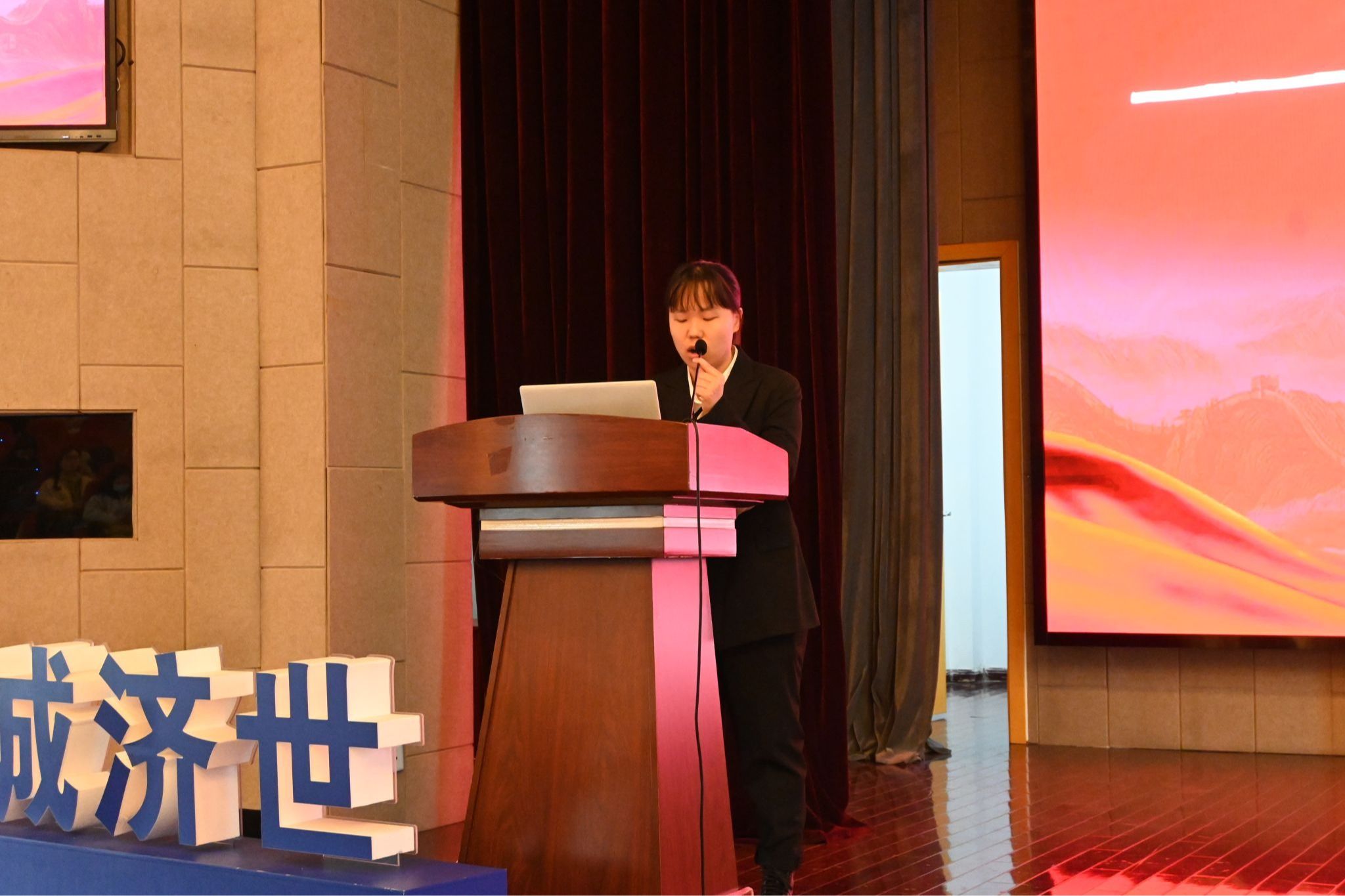 报告会第六组组长同学的介绍下,杜心怡带来了主题为昆韵流芳,传承新章的精彩演讲。她一开场便展示了《牡丹亭》的精彩唱段,她以自己独特的视角和经历,带领我们走进昆曲的世界探讨在快节奏的现代生活中,如何找到与传统文化的连接点,以及大学生如何承担起传承中华优秀传统文化的责任。