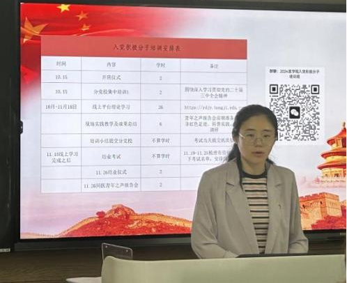 党委组织员秦瑾对本期党校培训班教学计划等相关安排作介绍,布置理论学习环节和实践教学环节各项任务。