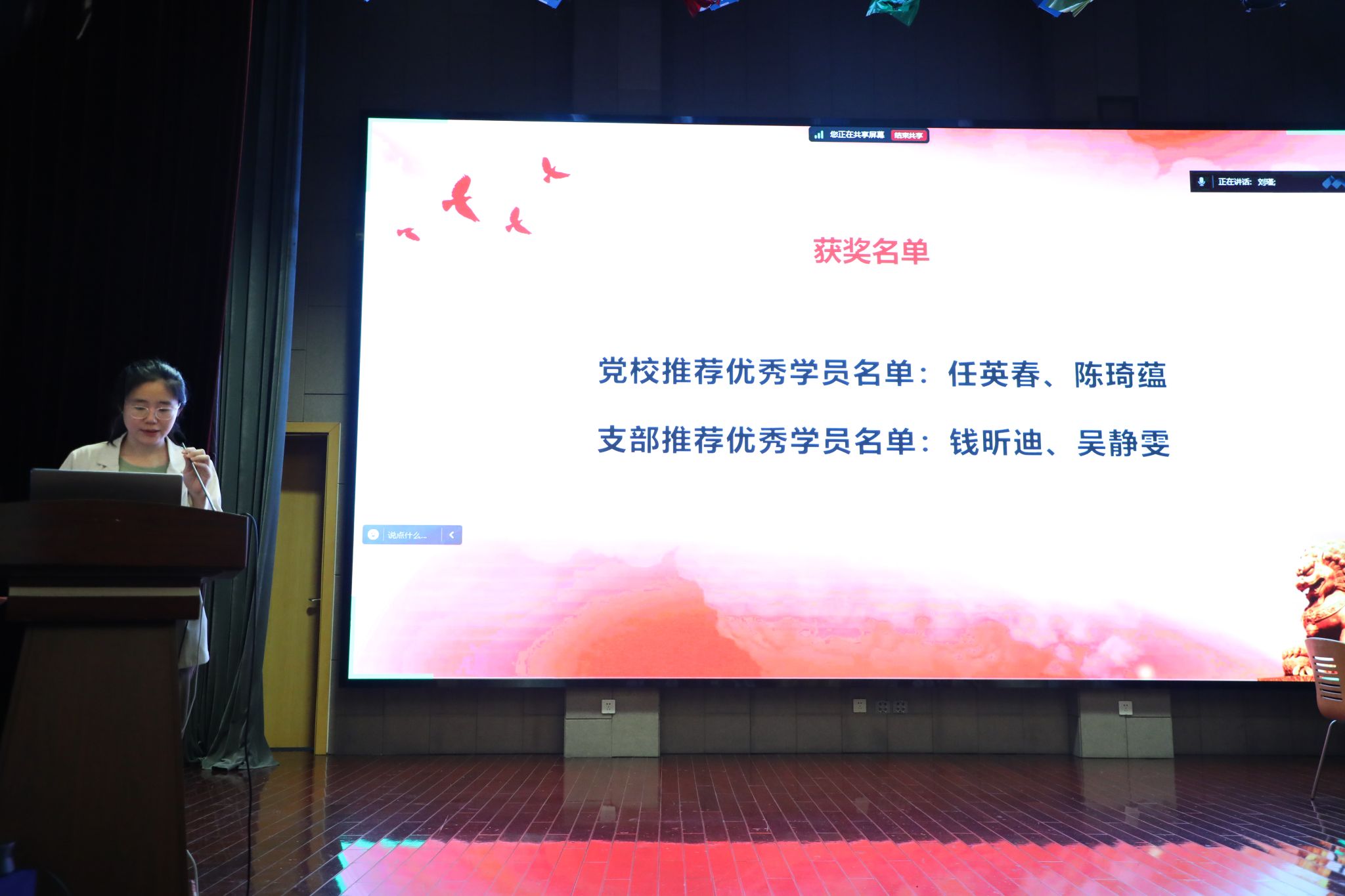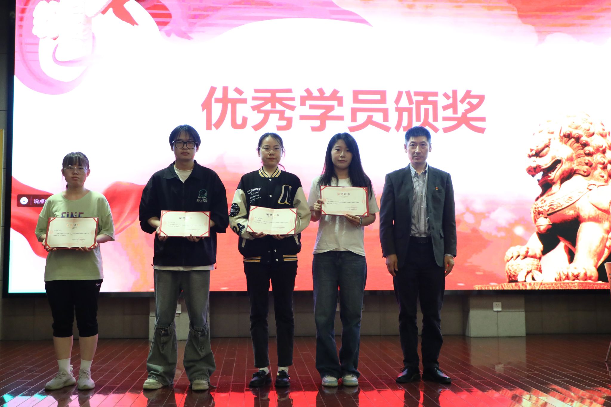 本次结业仪式共有36名积极分子与37名发展对象结业。任英春、陈琦蕴、钱昕迪、吴静雯四位学员被评为优秀学员。钱昕迪同学作为学生代表发言,总结从递交入党申请书至今的心路演变和思想成长,最后作为学员代表向党组织承诺:无论在任何时候,都将始终牢记党的教诲,坚定理想信念,严格遵守党的纪律,不断加强自身修养,努力工作,全心全意为人民服务。