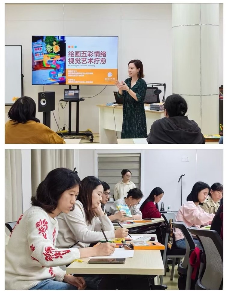 第一个环节是视觉艺术疗愈,在艺术治疗师的引导下,参与者运用彩色画笔,以不同的颜色和形状表达自己的情绪,完成一幅幅代表自己内心世界的作品。在这个过程中,参与者们不仅感受到情绪的多样性,还体验到了创作的乐趣和成就感。