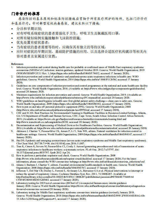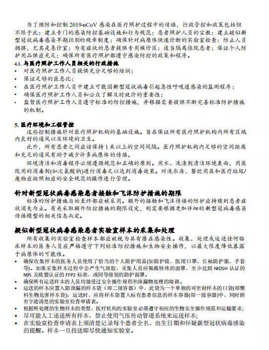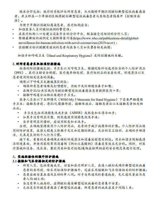 指南中还特别强调,各医疗机构在开展诊疗活动时需要系统地评估所有患者,从而能够早期识别疑似新型冠状病毒感染者;并立即在一个单独的区域内将疑似新型冠状病毒感染患者与其他患者隔离开,以达到控制传染源的目的。”