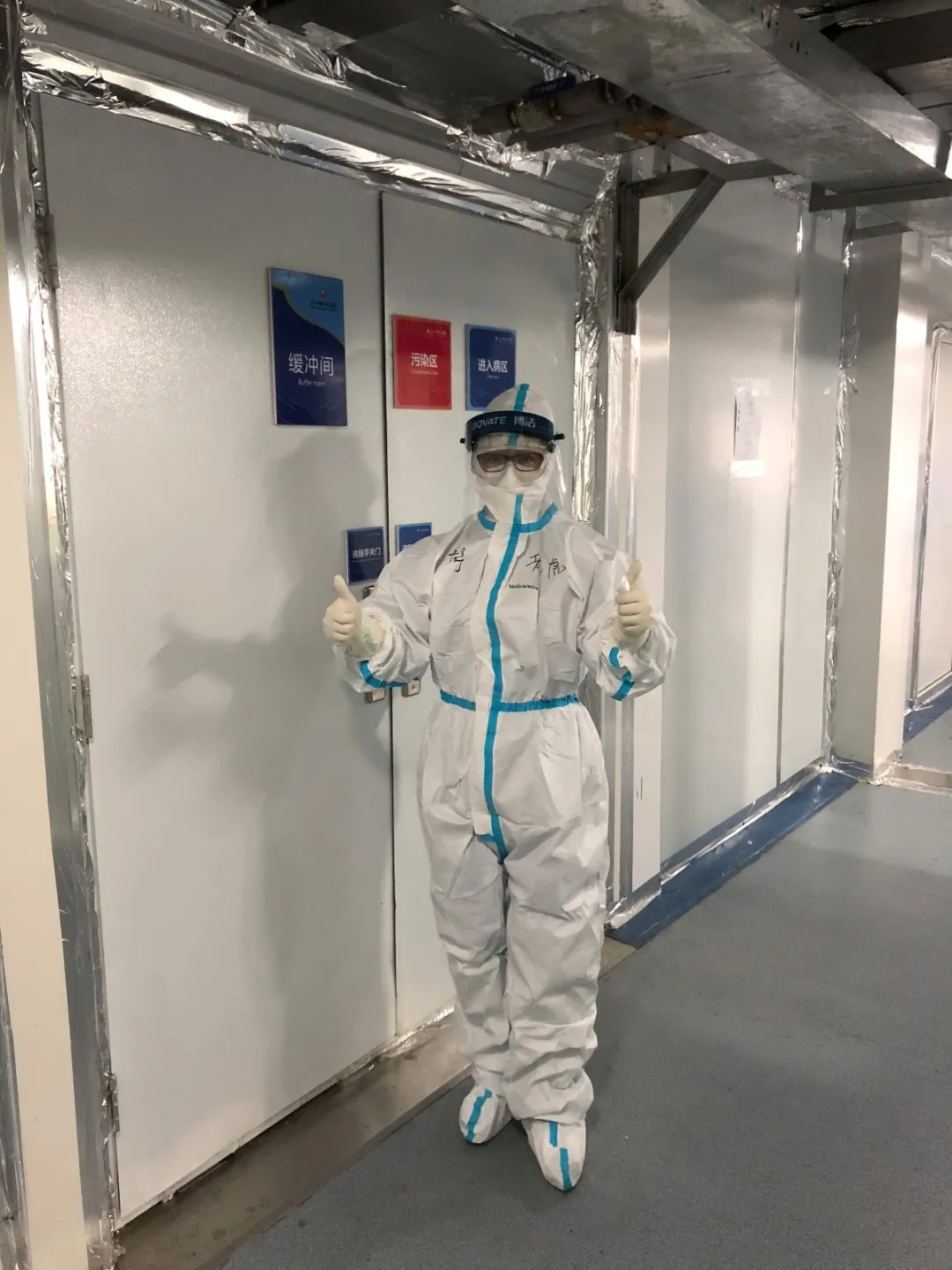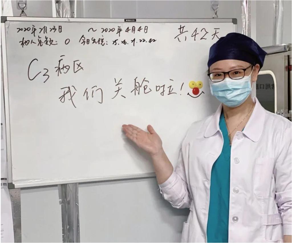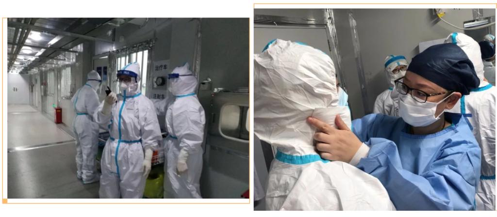 此次援鄂行动中,附属杨浦医院的八大专科护理团队成员分三批驰援武汉,第一批在小年夜集合出发,第二批在大年初四下午集合出发,第三批即王静老师所带领的护理团队与医生团队于2月19日出发,整建制地支援雷神山医院。整建制有利有弊,优势在于团队成员有默契,团队合作有保障,弊端是无法更好地进行取长补短、交流学习。出征武汉前,面对未知与病毒,大家还没有做好心理上的准备,比较恐慌与不安。19日下午到达后,整个队伍氛围有些压抑。王静老师介绍,队伍成员中有一部分是很年轻的护士,甚至都不敢向父母说自己到了武汉。密集式护理对医护人员来说是很大的考验,只要有一个人疏忽,就是“全军覆没”。在这样的心理高压下,王静老师注意到有人红了眼眶。