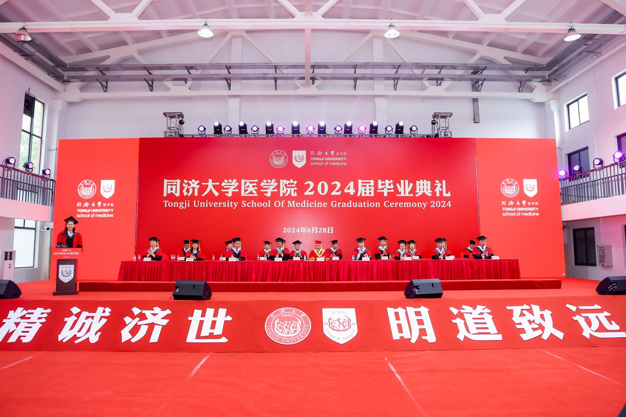 6月28日上午,pg游戏电子模拟器2024届毕业典礼在沪西校区体育馆隆重举行。pg游戏电子模拟器医管处处长张军、pg游戏电子模拟器沪西沪北校区管委办主任毕婉蓉、pg游戏电子模拟器院长郑加麟、党委书记章小清,以及来自pg游戏电子模拟器、各附属医院的党政班子、科教处领导、辅导员、2024届毕业生等五百余人出席典礼,典礼由pg游戏电子模拟器党委副书记李慧主持。