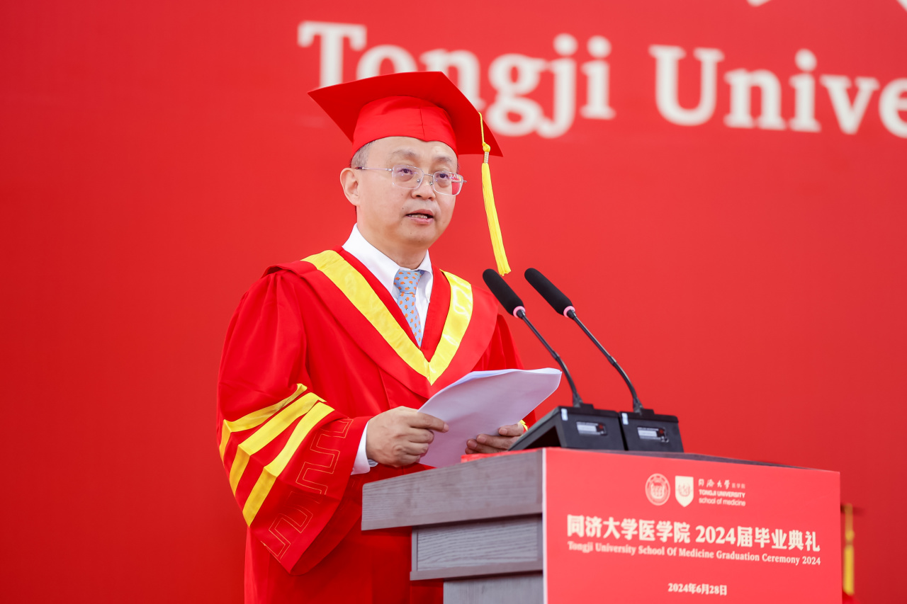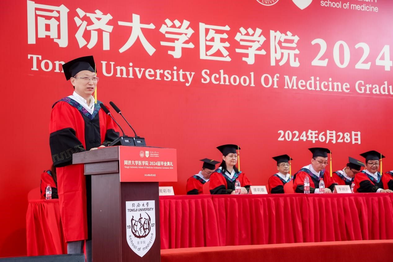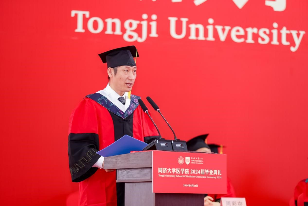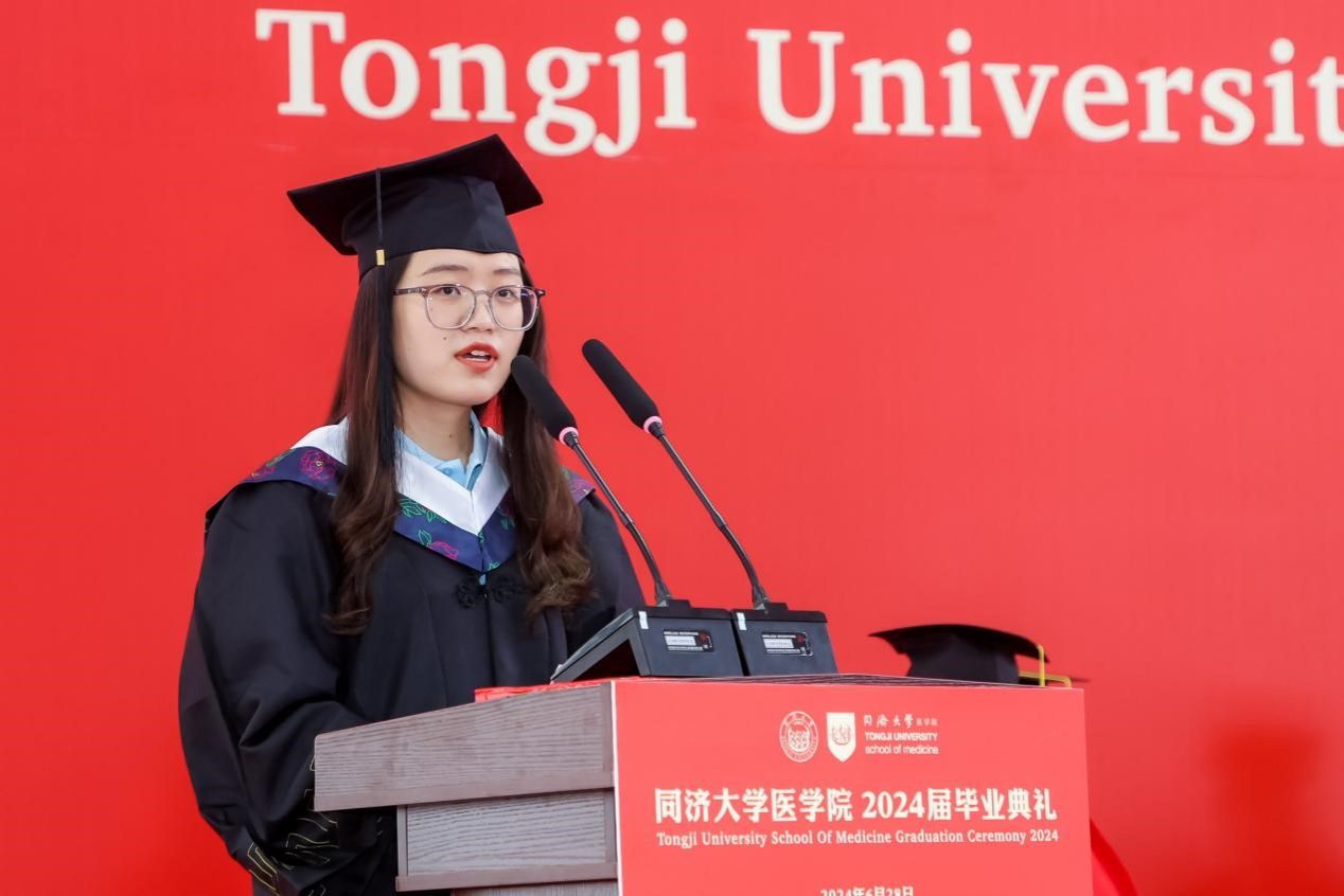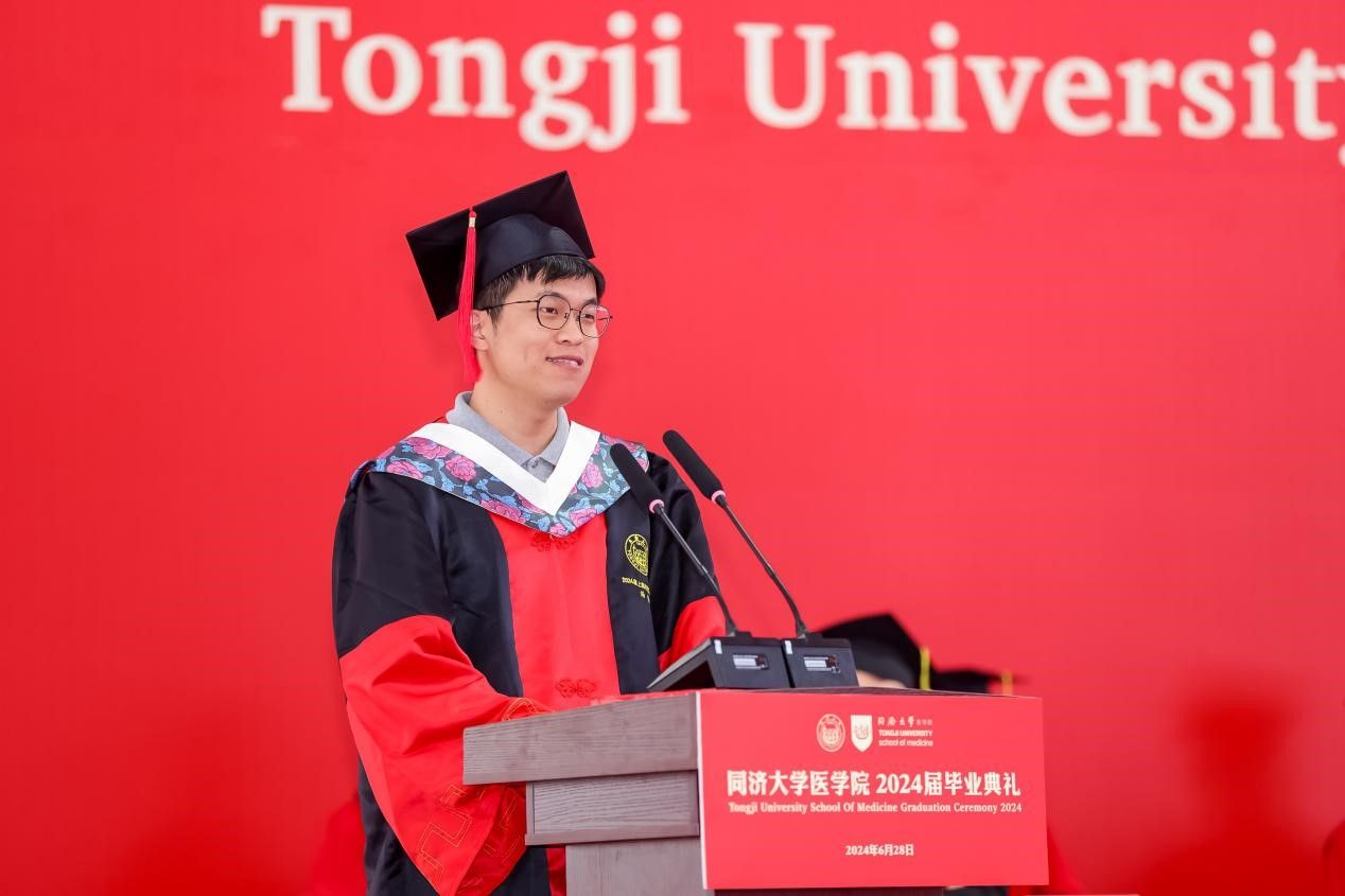研究生代表、上海市优秀毕业生获得者、2024年pg游戏电子模拟器追求卓越学生提名奖获得者、2019级博士生汤海感谢这一路来所有提供帮助的老师、家人、同学和朋友,向母校和学院表示真诚的感激和临别的不舍,表示面对挑战与压力,同医人从未退缩,因为深知唯有不断努力和坚持,方能成就真正卓越的医学人才。