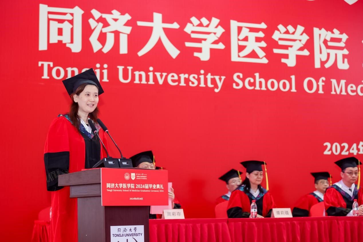 pg游戏电子模拟器肿瘤所所长、肿瘤学系主任周彩存作为导师代表发言,他勉励毕业生们永葆热情、敬畏生命,敢为人先、团结奋进,与日俱进、终身学习,秉承“同舟共济”的校训精神,勇往直前,追求真理与知识,为全球人类的健康事业贡献力量与智慧。