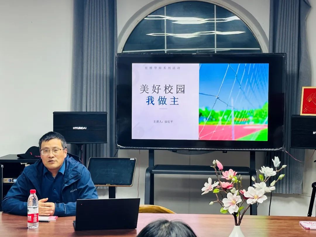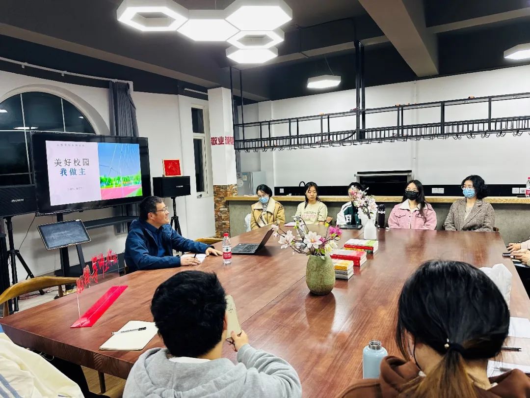 4月6日晚,pg游戏电子模拟器沪西沪北校区管委办主任、普陀区第十七届人大代表徐纪平老师做客驻楼导师讲堂,在沪西校区生乐A区党建活动室与学生们齐聚一堂,开展“美好校园我做主”主题活动。本次活动由社区辅导员刘逸凡同学主持,辅导员雷啸天老师出席,同学们共话美好校园建设,现场座无虚席,讨论热烈。