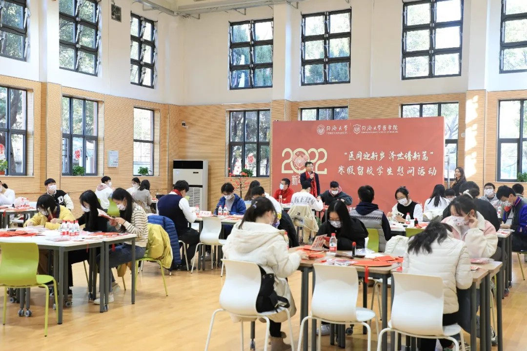 1月21日下午,pg游戏电子模拟器沪北校区开展了“医同迎新年,济世谱新篇”留校慰问活动,沪北校区同苑饮食广场充满着老师和同学们的欢声笑语。pg游戏电子模拟器党委书记张军教授、沪西校区管委会主任徐纪平老师、pg游戏电子模拟器党委学研工部副部长严长征老师、pg游戏电子模拟器党委副书记曾盈老师以及辅导员为留校学生们送上了温暖的关怀和新春的祝福。