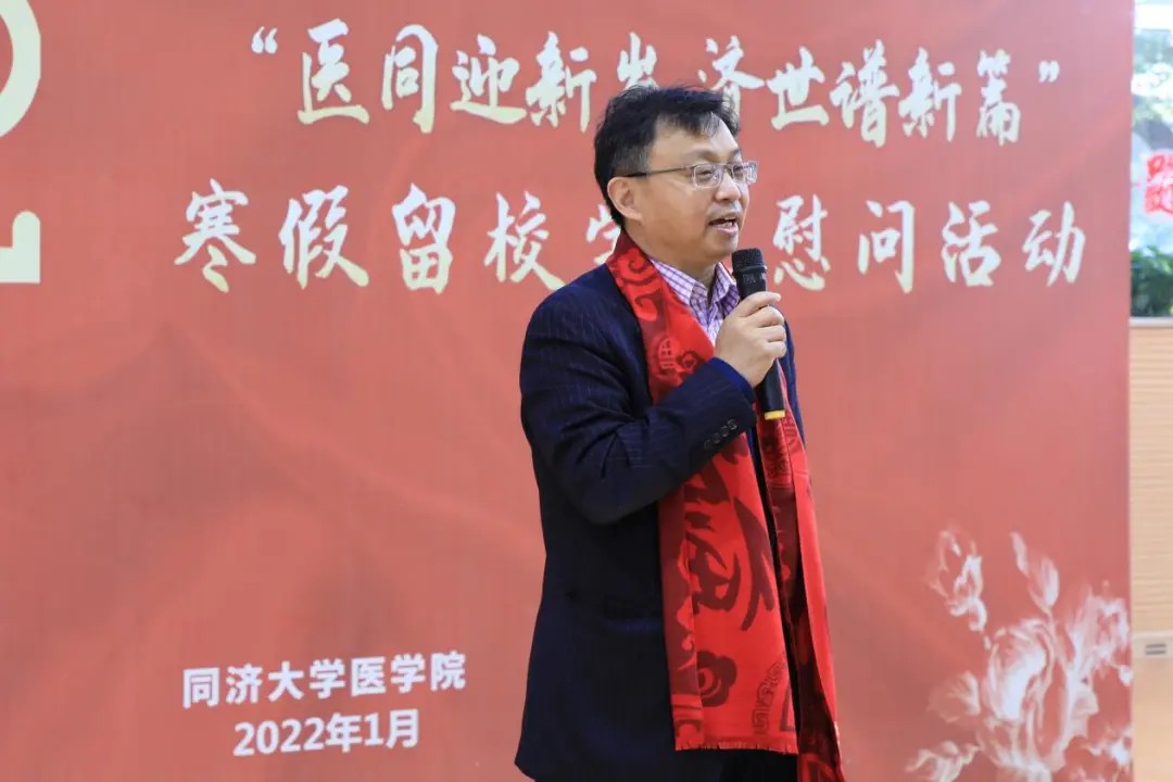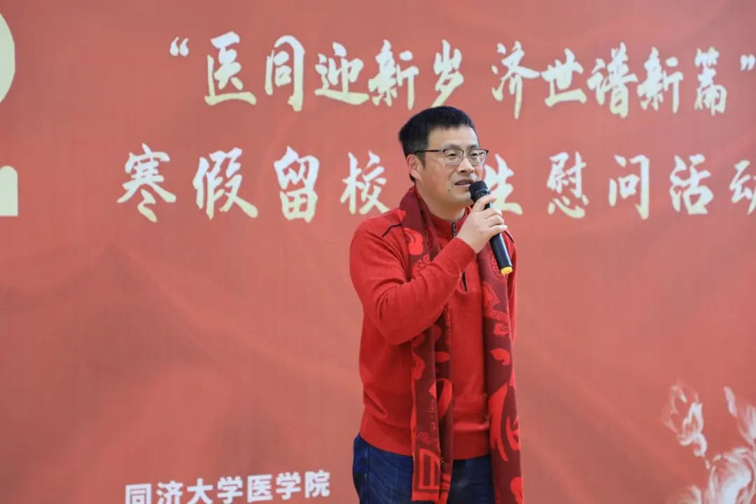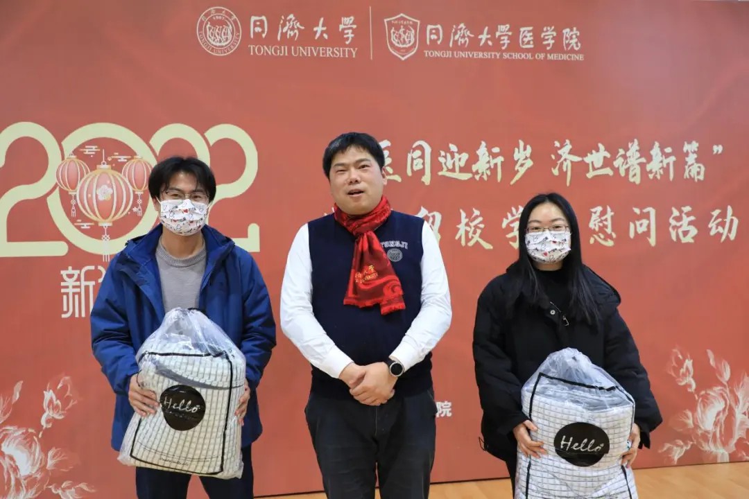 现场由宋心语老师主持,张军书记和曾盈老师分别致慰问词,并为学生代表发放了精心准备的新春慰问礼包,祝福大家新年新气象,虎年大吉,虎虎生威,以更加昂扬的姿态展现同济医学生的风采。同时留校学生代表汪洋同学发表感想,表示疫情期间虽然不能回家与家人团聚,但能感受到来自pg游戏电子模拟器领导的温暖关怀,内心深受感动,也很感谢学院老师提供珍贵的机会与大家一起欢乐地过年。