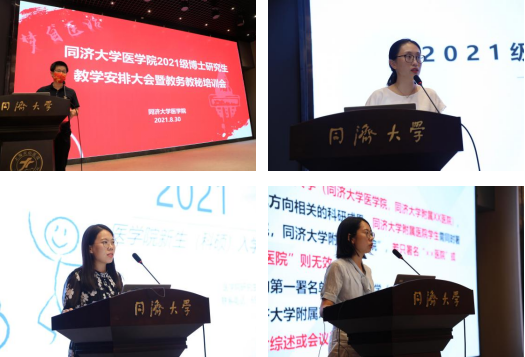在每场培训会的总结发言中,pg游戏电子模拟器研究生办公室余佳主任要求新生们务必在学习中投入更多精力,掌握好临床和基础研究的方法,做好临床与科研工作的时间管理。余主任寄语新生,希望大家以同济为家,勤于探索,以奋发有为、开拓进取的精神面貌开启研究生阶段的生活。同时,余主任对各院系教务人员的辛勤工作表示感谢,并期待教务教秘老师们在以后的工作中继续秉承服务的理念,扎实做好本职工作。