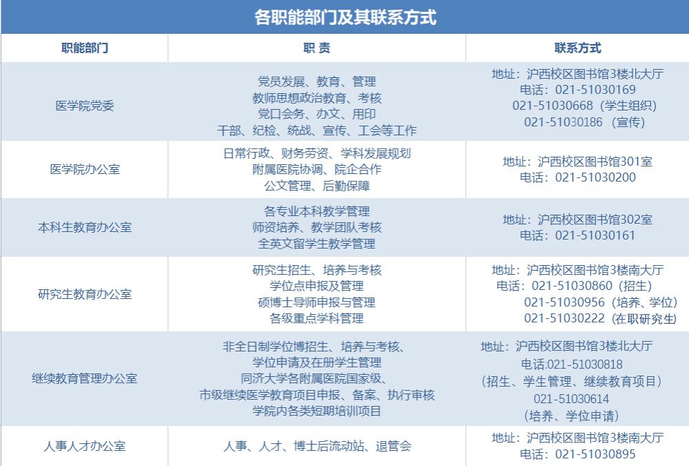 各职能部门及其联系方式